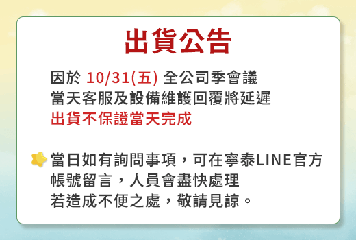 1. 出貨時間為上班日周一到周五,六日、國定假日休息不出貨。